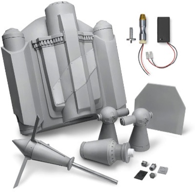 Beacon & Stabilizer are resin with metalized painted surfaces. The Beacon includes a Working Light.